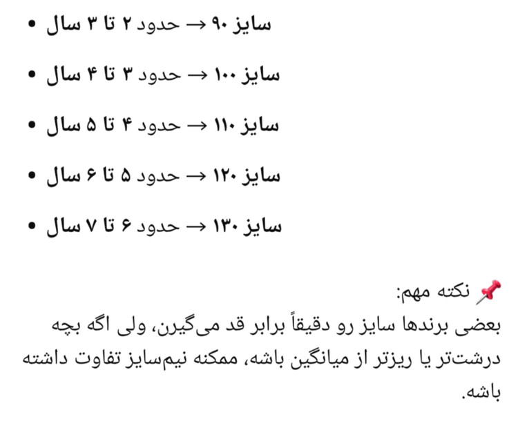 چارت سایزبندی در تصاویر میتونید چک کنید.